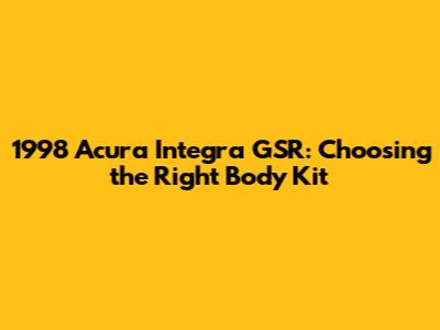 Choosing the right body kit for your 1998 Acura Integra GSR is a personal decision that depends on your individual taste, budget, and goals. By considering the factors outlined in this guide, you can make an informed choice and transform your Integra into a unique and stylish ride. Remember to do your research, choose quality components, and either invest in professional installation and painting or be prepared to put in the time and effort to do it yourself. With a little planning and effort, you can create a custom Integra that turns heads wherever you go.