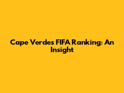 Cape Verde's FIFA Ranking: An Insight
