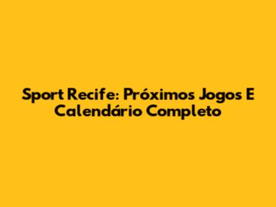 Sport Recife: Próximos Jogos E Calendário Completo