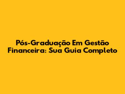 Pós-Graduação Em Gestão Financeira: Sua Guia Completo