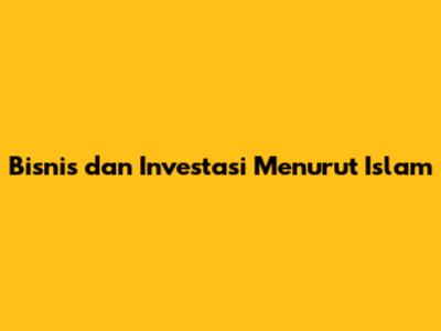 Prinsip Dasar Bisnis dan Investasi Islami