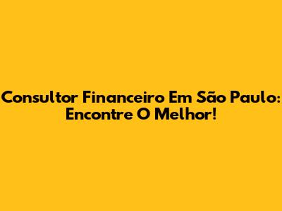 Consultor Financeiro Em São Paulo: Encontre O Melhor!