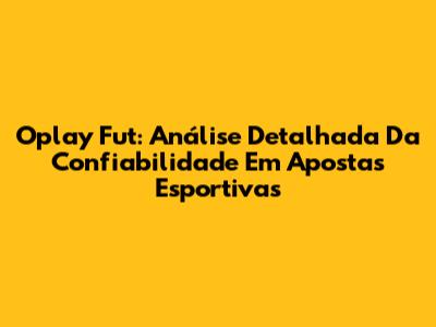 Oplay Fut: Análise Detalhada Da Confiabilidade Em Apostas Esportivas