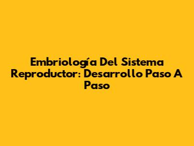 Embriología Del Sistema Reproductor: Desarrollo Paso A Paso