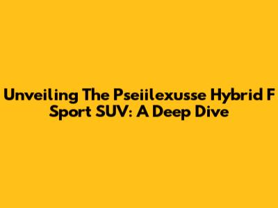 Unveiling The Pseiilexusse Hybrid F Sport SUV: A Deep Dive
