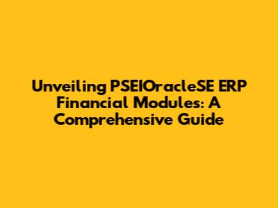 Unveiling PSEIOracleSE ERP Financial Modules: A Comprehensive Guide