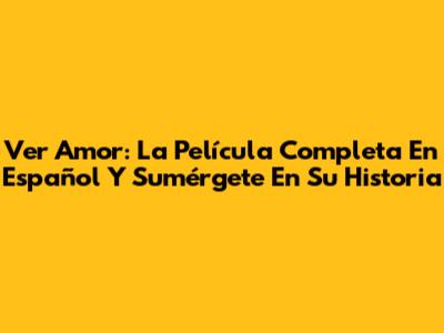 Ver Amor: La Película Completa En Español Y Sumérgete En Su Historia