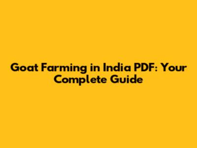 Goat Farming in India PDF: Your Go-To Resource