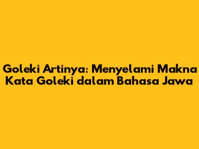 Goleki artinya merupakan frasa yang seringkali dicari oleh mereka yang ingin memperdalam pengetahuan tentang bahasa Jawa. Bagi kalian yang baru belajar atau bahkan sudah mahir berbahasa Jawa, memahami arti dari kata 'goleki' adalah langkah penting. Artikel ini akan membahas secara mendalam tentang arti goleki, penggunaan, serta contoh kalimatnya, agar kalian bisa lebih fasih dalam berkomunikasi menggunakan bahasa Jawa.