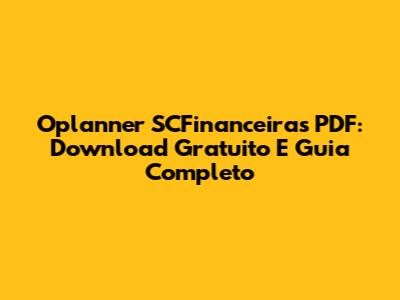 Oplanner SCFinanceiras PDF: Download Gratuito E Guia Completo