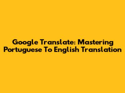 Google Translate: Mastering Portuguese To English Translation