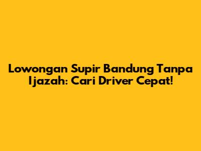 Lowongan Supir Bandung Tanpa Ijazah: Cari Driver Cepat!