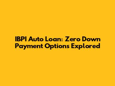 IBPI Auto Loan: Zero Down Payment Options Explored