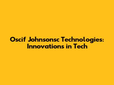 Oscif Johnsonsc Technologies: Innovations In Tech