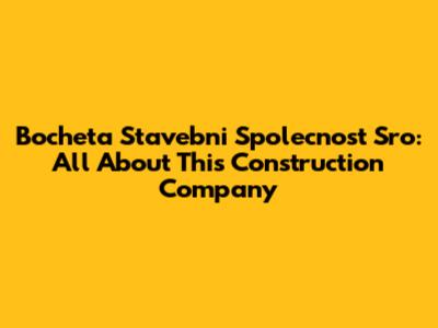 Bocheta Stavebni Spolecnost Sro: All About This Construction Company