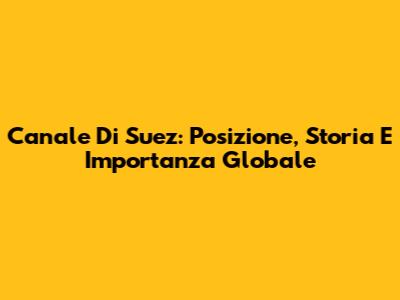 Canale Di Suez: Posizione, Storia E Importanza Globale