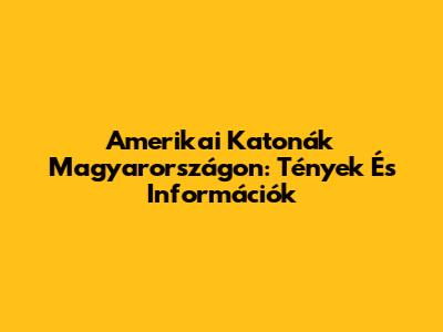 Amerikai Katonák Magyarországon: Tények És Információk