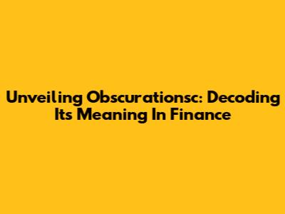 Unveiling Obscurationsc: Decoding Its Meaning In Finance