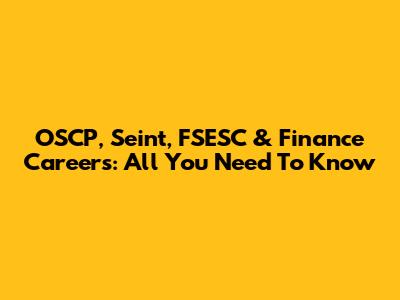 OSCP, Seint, FSESC & Finance Careers: All You Need To Know